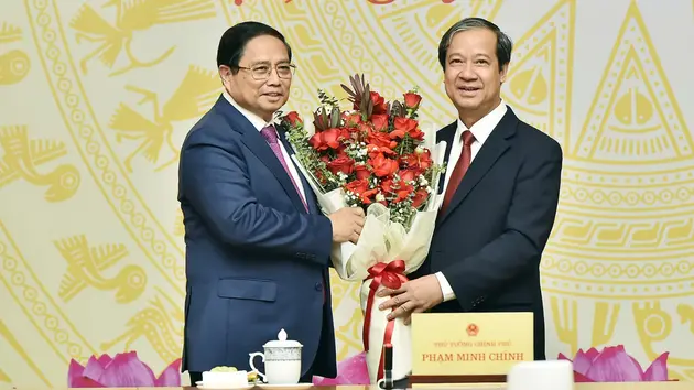 Thủ tướng Phạm Minh Chính và Bộ trưởng Bộ Giáo dục và Đào tạo Nguyễn Kim Sơn.