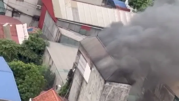 Tại hiện trường, cột khói đen bốc lên ngùn ngụt.