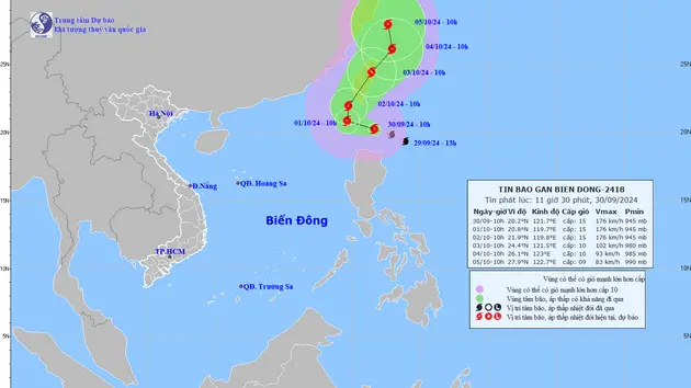 Theo dự báo, phía đông khu vực Bắc Biển Đông chiều tối và đêm nay 30/9 có gió mạnh cấp 8 - cấp 10, vùng gần tâm bão Krathon mạnh cấp 12 - cấp 14, giật cấp 17.