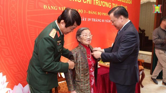 Sáng nay (19/1), Ủy viên Bộ Chính trị, Bí thư Thành ủy Đinh Tiến Dũng, Trưởng đoàn đại biểu Quốc hội TP. Hà Nội đã đến nhà riêng trao Huy hiệu 75 năm tuổi Đảng cho đồng chí Trương Thị Hồng, đảng viên Chi bộ 3, Đảng bộ phường Trung Tự, quận Đống Đa.