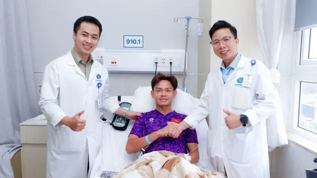 Chân sút sinh năm 2003 chia sẻ: "Nhưng rồi, nơi này đã cho mình một trải nghiệm rất khác so với những gì mình tưởng tượng. Ấm áp, bình yên và yên tâm. Các bác sĩ, đặc biệt là bác sĩ Dũng – người trực tiếp phẫu thuật cho mình – không chỉ giỏi chuyên môn mà còn cực kỳ tâm lý. Lúc mình còn hoang mang, bác chỉ nhẹ nhàng nói: Cậu cứ yên tâm, mọi thứ rồi sẽ ổn. Một câu đơn giản thôi mà làm mình thấy vững tinh thần hơn hẳn. Từ điều dưỡng đến các anh chị kỹ thuật viên – ai cũng nhẹ nhàng, chăm sóc kỹ lưỡng. Những ngày đầu hậu phẫu khó ngủ, có người vào hỏi han từng chút một. Mình thật sự biết ơn điều đó. Chấn thương là điều không ai muốn. Nhưng nếu phải chọn một nơi để trải qua nó, mình nghĩ mình đã rất may mắn khi có bệnh viện đồng hành".