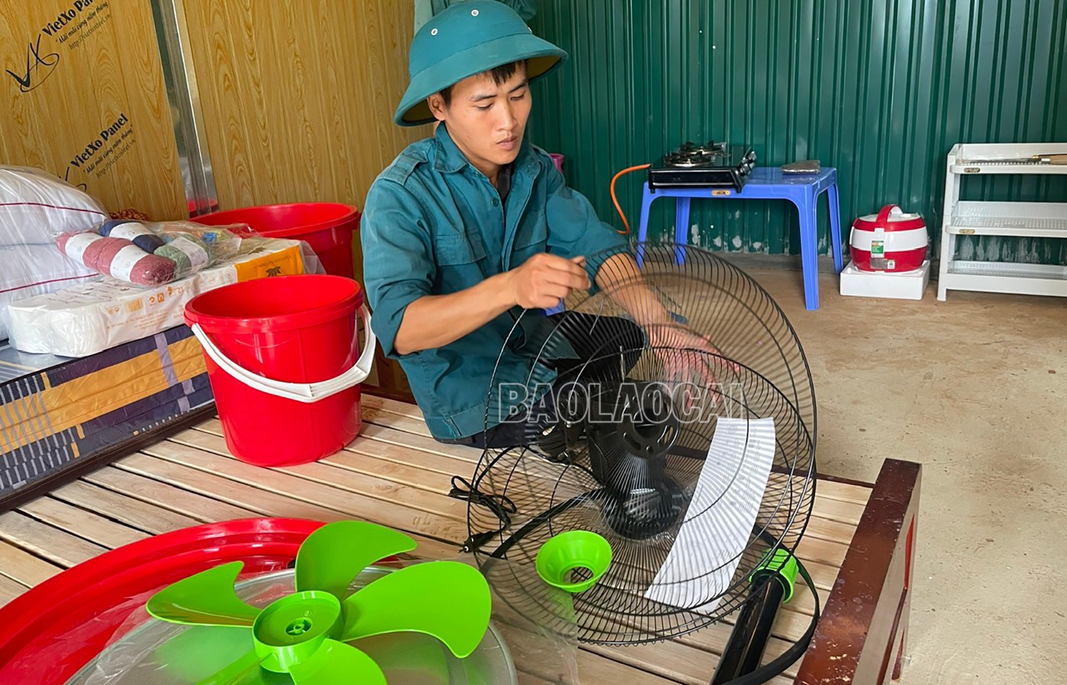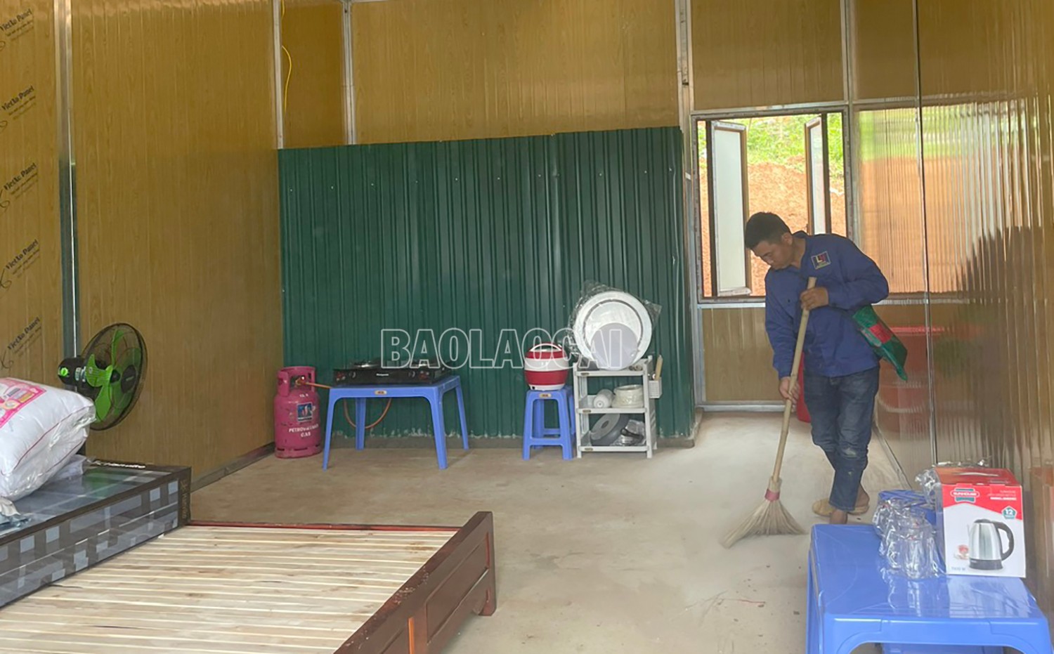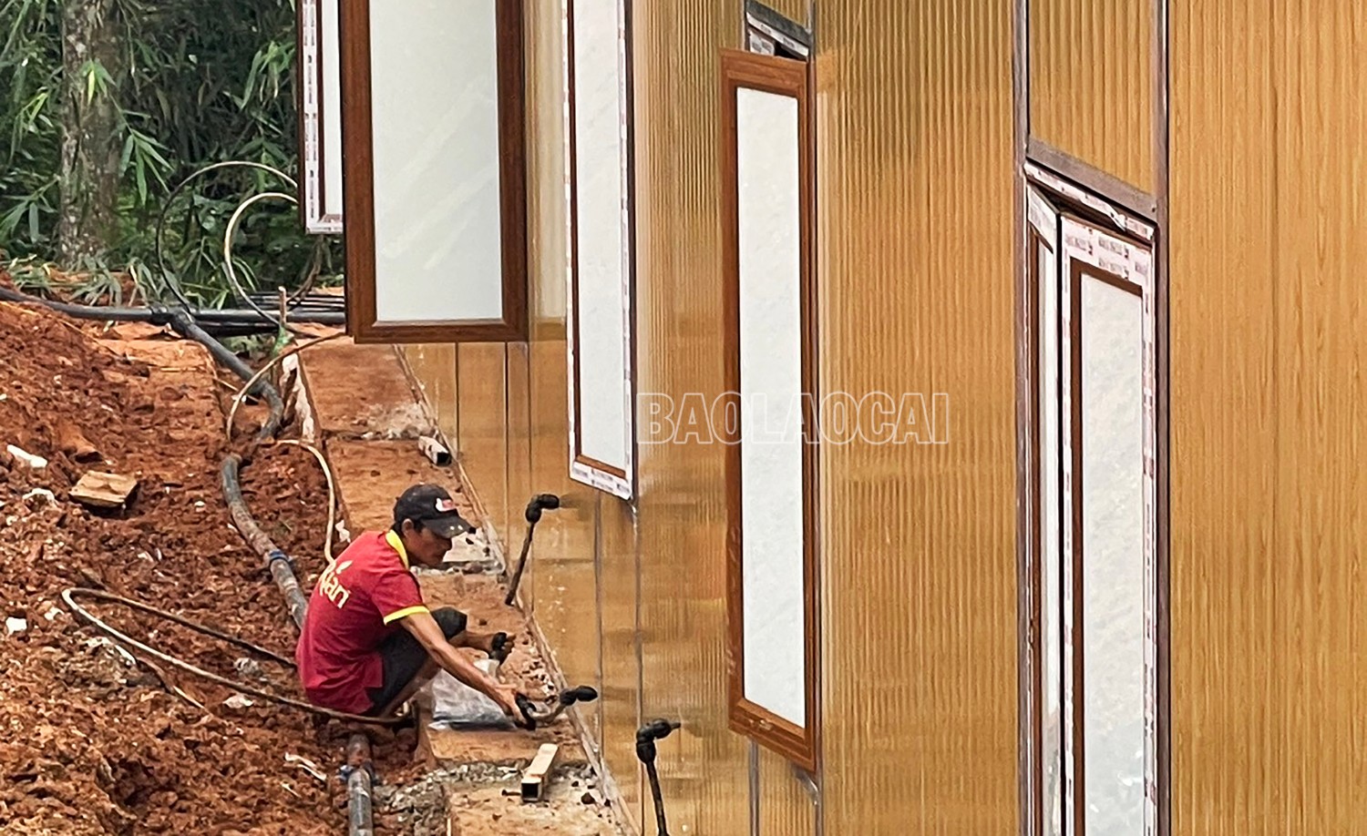 Lắp đặt các đồ dùng sinh hoạt. Ảnh: Báo Lào Cai