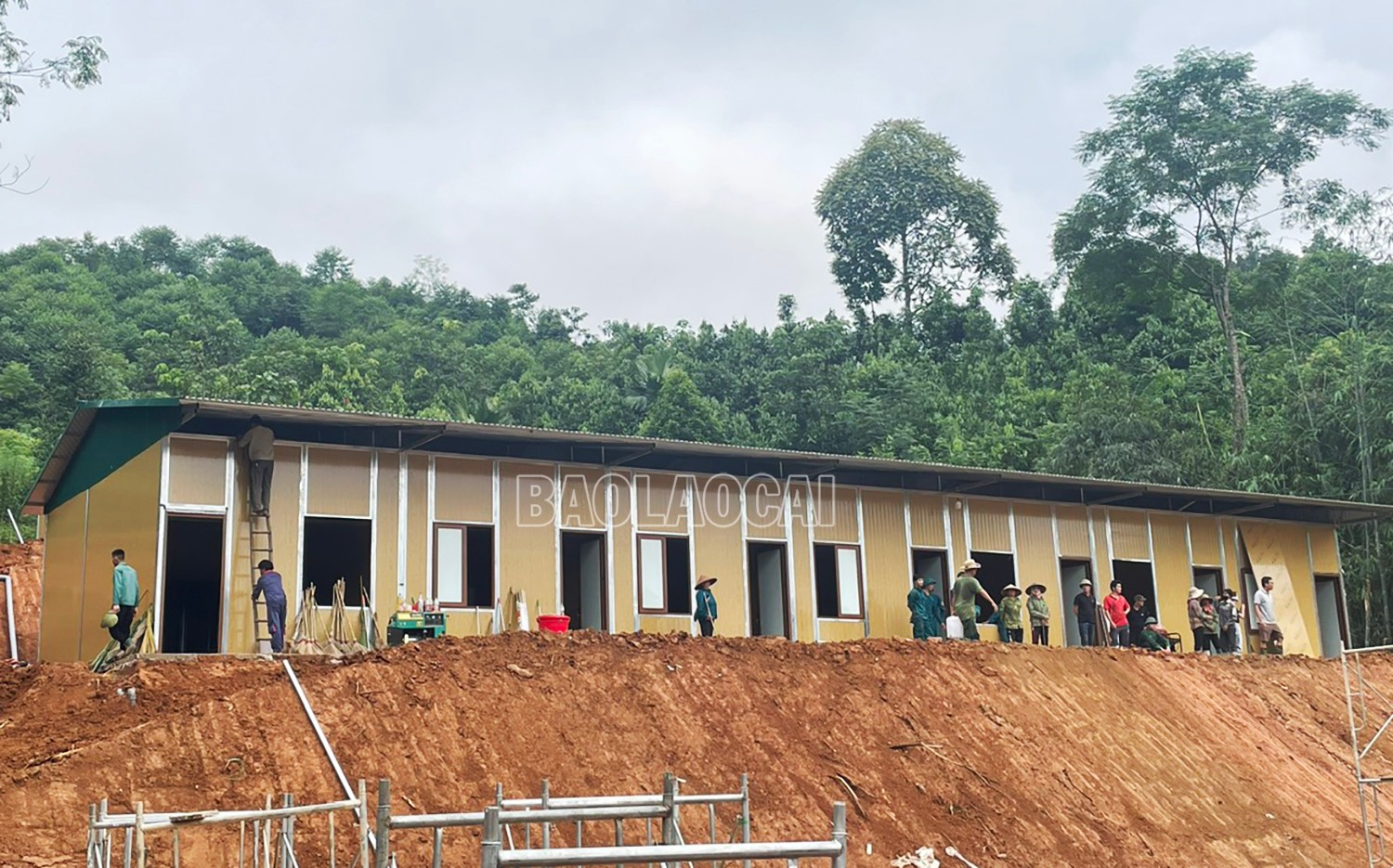 Khu nhà tạm dành cho người dân thôn Làng Nủ, xã Phúc Khánh, huyện Bảo Yên, tỉnh Lào Cai được hoàn thiện vào sáng 21/9. Các lực lượng cùng với người dân xã Phúc Khánh và xã Lương Sơn đã khẩn trương vận chuyển, lắp đặt đồ dùng sinh hoạt, tiến hành vệ sinh sạch sẽ từng căn nhà để chuẩn bị đón người dân Làng Nủ đến tạm cư.