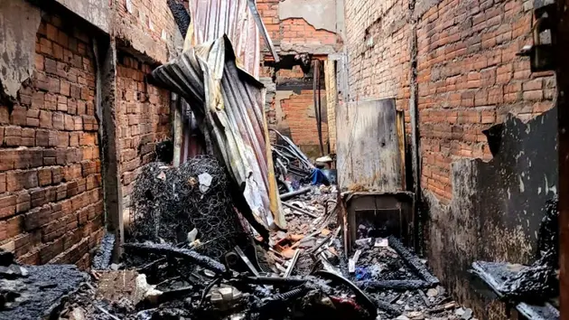 Những người dân xung quanh nghe tiếng kêu cứu nhưng do cửa của căn nhà khóa bên trong nên không ai thoát ra được.