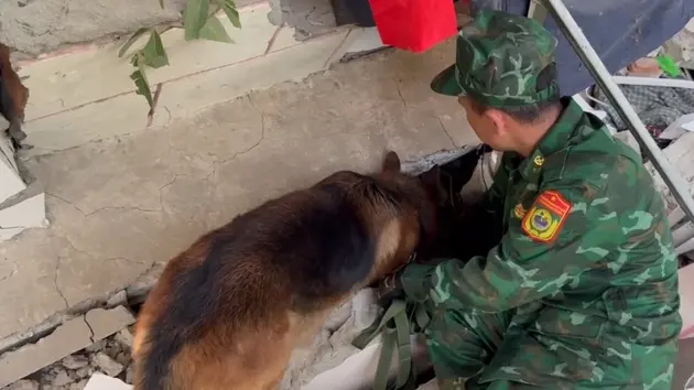 Ba chó nghiệp vụ của Việt Nam phát hiện các vị trí có nguồn hơi dưới đống đổ nát, lực lượng công binh sau đó sử dụng máy dò để xác định chính xác vị trí các nạn nhân bị vùi lấp.