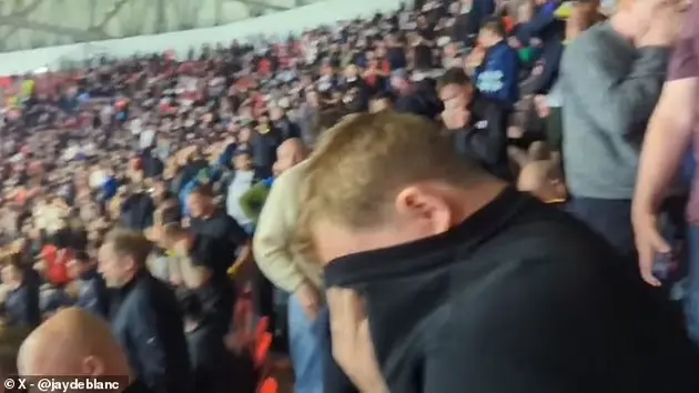 Người hâm mộ Man United chiếm 3.000 trong số 59.000 chỗ ngồi của sân vận động, nhiều người được nhìn thấy kéo áo che mặt sau khi tiếng còi mãn cuộc vang lên.