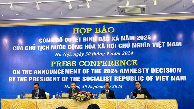 Sáng 30/9, Văn phòng Chủ tịch nước phối hợp với Bộ Công an, Tòa án nhân dân tối cao, Bộ Ngoại giao và các cơ quan có liên quan tổ chức họp báo công bố Quyết định đặc xá năm 2024 của Chủ tịch nước Cộng hòa xã hội chủ nghĩa Việt Nam.
