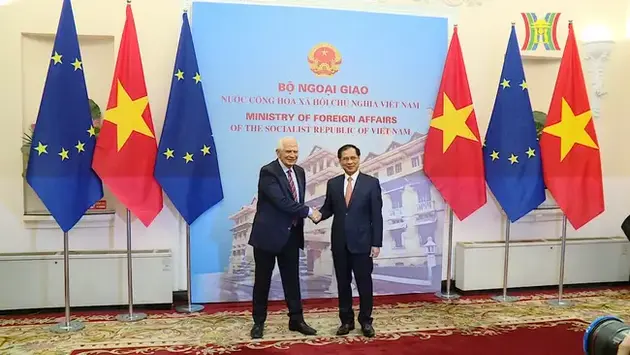 Nhận lời mời của Bộ trưởng Bộ Ngoại giao Bùi Thanh Sơn, Đại diện cấp cao Liên minh châu Âu (EU) chính sách đối ngoại và an ninh, Phó chủ tịch Ủy ban châu Âu (EC) Josep Borrell thăm chính thức Việt Nam từ ngày 29 đến 31/7. Hôm nay, Bộ trưởng Ngoại giao Bùi Thanh Sơn và ông Josep Borrell đã tiến hành hội đàm và gặp mặt báo chí.