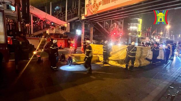 Sau khi nhận được tin báo, Đội Cảnh sát PCCC&CNCH Công an quận Hoàn Kiếm đã điều động một xe thang, một xe chữa cháy cùng cán bộ, chiến sĩ đến hiện trường, tổ chức đưa nam thanh niên xuống.