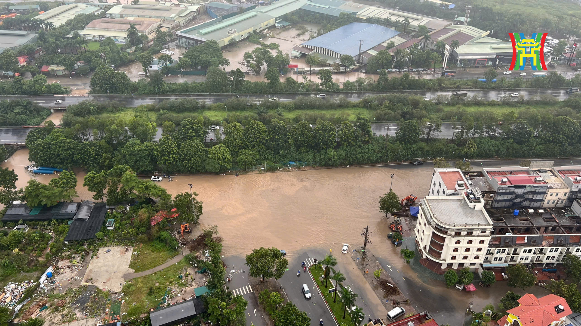 Mưa lớn trong bối cảnh hệ thống ao, hồ, sông đang có mức nước cao do ảnh hưởng của cơn bão số 3 khiến hàng loạt tuyến phố bị ngập.