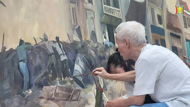 Từ 29/9 đến 2/10, tại Quảng trường Ẩm thực Đảo Ngọc Ngũ Xã, 60 hoạ sĩ gấp rút hoàn thiện bức tranh Panorama “Hà Nội: Kháng chiến - Dựng xây - Đổi mới”.