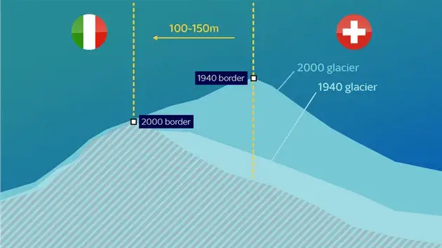 Do các sông băng đánh dấu ranh giới hai quốc gia tan chảy, do đó một phần biên giới giữa Italy và Thụy Sĩ sẽ được điều chỉnh lại.