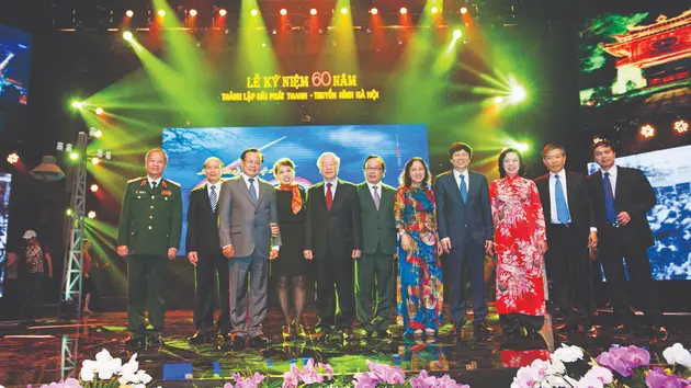 Tổng Bí thư Nguyễn Phú Trọng thay mặt Đảng, Nhà nước trao Huân chương Độc lập hạng Nhất lần thứ hai cho Đài Phát thanh - Truyền hình Hà Nội nhân kỷ niệm 60 năm Ngày thành lập (14/10/1954 – 14/10/2014). Ảnh Viết Mạnh.