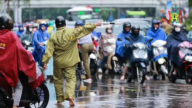 Rạng sáng nay (16/9), Hà Nội có mưa lớn kéo dài nhiều giờ khiến nhiều tuyến phố ngập sâu, giao thông ùn tắc kéo dài trong giờ cao điểm sáng. Lực lượng chức năng phải bố trí điều hướng người đi đường để không đi vào đoạn đường ngập sâu.