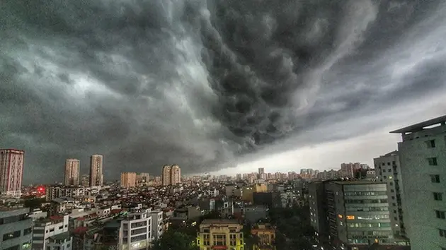 Mưa dông kéo đến khu vực nội thành Hà Nội chiều 21/4