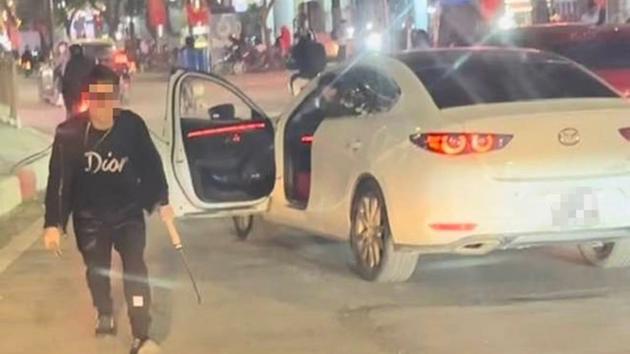 Đoạn clip ghi lại hình ảnh người điều khiển xe Mazda biển kiểm soát 30G-429xx cho dừng xe giữa đường Hoàng Quốc Việt (đoạn gần cầu vượt đi bộ) thuộc địa bàn quận Bắc Từ Liêm, rồi xuống xe, cầm hai con dao dài trên tay và đi về phía chiếc xe buýt đang đỗ cùng chiều. Thanh niên này chém nhiều nhát vào phần lốp xe buýt, sau đó liền lên xe bỏ đi.