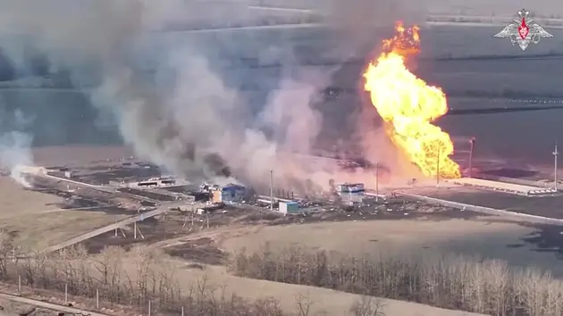 Bộ Quốc phòng Nga ngày 28/3 công bố hình ảnh cho thấy một đám cháy lớn nhấn chìm trạm đo khí đốt Sudzha ở khu vực Kursk.
