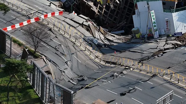 Vụ sập này xảy ra lúc 3 giờ 13 phút chiều 11/4, khiến một đoạn đường trên mặt đất bị sụt xuống và vỡ nát, đồng thời làm hư hại một số tòa nhà gần đó.