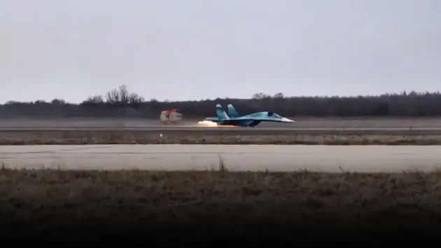 Theo đoạn video được lan truyền trên X, một máy bay tiêm kích - ném bom Su-34 của Nga đã hạ cánh mà không có càng đáp tại một sân bay không được tiết lộ vào ngày 22/3.