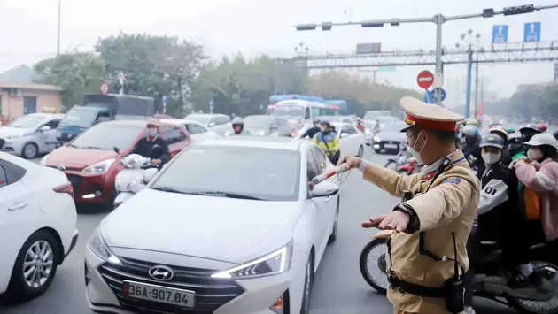 Cán bộ Cảnh sát Giao thông sẽ kiểm tra, kiểm soát giấy phép lái xe, cũng như các giấy tờ liên quan đã được tích hợp trên ứng dụng VNeID.