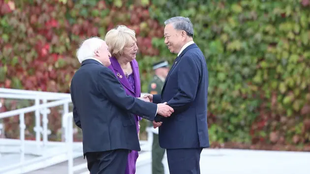 Trưa 2/10 (giờ Ireland, chiều tối cùng ngày giờ Việt Nam), lễ đón trọng thể Tổng Bí thư, Chủ tịch nước Tô Lâm đã diễn ra tại Phủ Tổng thống, dưới sự chủ trì của Tổng thống Ireland Michael D. Higgins và Phu nhân.