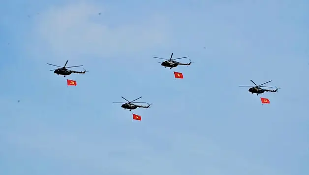 Các phi đội trực thăng, tiêm kích đã hợp luyện đợt cuối cùng vào sáng nay (25/4) để chuẩn bị cho Lễ diễu binh, diễu hành kỷ niệm 50 năm ngày Giải phóng miền Nam, thống nhất đất nước diễn ra vào 6h30 sáng ngày 30/4.
