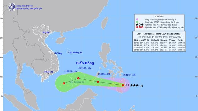 Dự báo, vào lúc 13 giờ ngày 19/12, áp thấp nhiệt đới di chuyển theo hướng Tây Tây Bắc, vận tốc khoảng 25km/h với cường độ cấp 6 giật cấp 8.