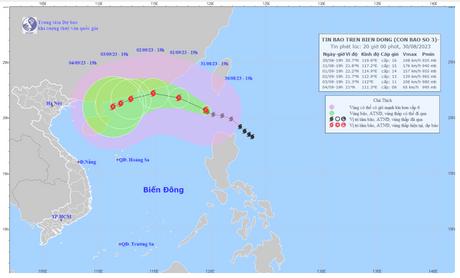 Theo Trung tâm Dự báo khí tượng thủy văn Quốc gia, hồi 19 giờ ngày 30/8, vị trí tâm bão ở vào khoảng 20,7 độ Vĩ Bắc; 119,6 độ Kinh Đông, trên vùng biển phía Đông Bắc của khu vực Bắc Biển Đông, cách Hồng Kông (Trung Quốc), khoảng 620km về phía Đông Đông Nam. Sức gió mạnh nhất vùng gần tâm bão mạnh cấp 16 (184-201km/h), giật trên cấp 17, di chuyển theo hướng Tây Tây Bắc, tốc độ khoảng 15 km/h.