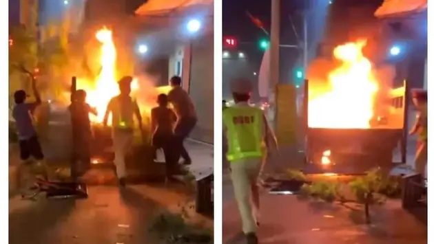 Khi tổ công tác lập biên bản vi phạm hành chính, nam tài xế ký vào biên bản và đi ra ngoài. Sau đó, ông này tìm cách nhảy lên ô tô tải nâng của cảnh sát giao thông rồi giật nắp bình xăng châm lửa đốt xe máy của mình. Chiếc xe bốc cháy, lan sang 3 xe mô tô khác cùng đang bị tạm giữ. Vụ việc làm 4 xe mô tô bị thiệt hại. Trong đó, chiếc xe của tài xế L.V.T. bị thiêu rụi hoàn toàn, 3 xe còn lại hư hỏng một phần. Cảnh sát giao thông sau đó đã đã khống chế nghi can và cùng người dân dập lửa. Khoảng 10 phút đám cháy được dập tắt hoàn.