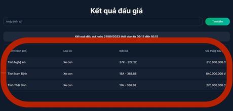 Cụ thể, biển số 17A - 368.88 của tỉnh Thái Bình được đấu giá thành công ở mức 270.000.000 đồng, tiếp đến là biển ngũ quý 8 của Nam Định 18A - 388.88 được trả giá 840.000.000 đồng và cuối cùng là biển ngũ quý 2 37K - 222.22 của Nghệ An với giá trúng đấu giá là 810.000.000 đồng.