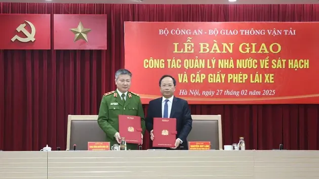 Lễ bàn giao công tác quản lý Nhà nước về sát hạch và cấp giấy phép lái xe đã được hai Bộ Công an và Bộ Giao thông Vận tải tổ chức chiều 27/2.