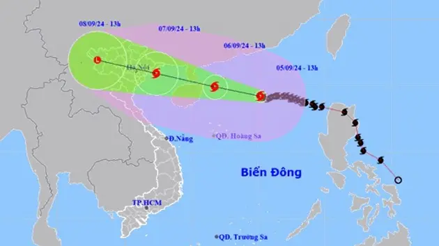 Theo Trung tâm Dự báo khí tượng thủy văn quốc gia, trong chiều và đêm nay 5/9, siêu bão số 3 tiếp tục di chuyển theo hướng Tây Tây Bắc với vận tốc từ 10-15km/h. Đến đầu giờ chiều mai 6/9, siêu bão số 3 ở vào khoảng 19,9 độ Vĩ Bắc-111,8 độ Kinh Đông; trên vùng biển phía Đông Bắc đảo Hải Nam (Trung Quốc), cách Quảng Ninh khoảng 510km về phía Đông Đông Nam. Sức gió mạnh nhất vùng tâm bão mạnh cấp 16, giật trên cấp 17.