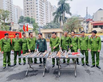 Nằm trong đợt cao điểm tấn công, trấn áp tội phạm, bảo đảm an ninh trật tự dịp Tết Nguyên đán Quý Mão 2023, sáng 12/01/2023, sau quá trình thu hồi, phân loại, Công an quận Thanh Xuân đã tiến hành bàn giao các loại vũ khí, vật liệu nổ, công cụ hỗ trợ và pháo nổ cho Ban Chỉ huy Quân sự quận Thanh Xuân để tiêu hủy theo quy định của pháp luật.
