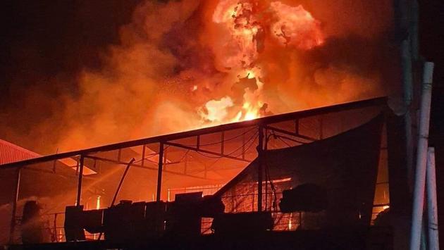 Vào khoảng 23 giờ tối 14/3, một đám cháy lớn đã xảy ra một xưởng nhựa nằm tại Cụm công nghiệp Yên Đồng, Đông Mẫu, Yên Lạc, Vĩnh Phúc.