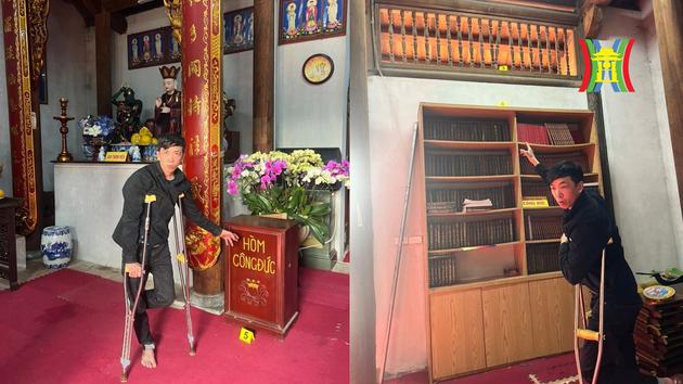Cụ thể, Công an huyện Quốc Oai nhận được đơn trình báo chùa Sùng Quang, xã Liệp Tuyết, huyện Quốc Oai bị kẻ gian đột nhập, cạy phá 04 hòm công đức trộm cắp tiền bên trong. Ngay sau khi tiếp nhận thông tin, Công an huyện Quốc Oai đã khẩn trương tiến hành điều tra, làm rõ vụ việc. Sau quá trình điều tra, Công an huyện Quốc Oai đã bắt giữ đối tượng gây án là Nguyễn Quyết Chí. Căn cứ tài liệu, chứng cứ thu thập được, cơ quan công an xác định mặc dù mới bị tai nạn xe máy và bị gãy xương bàn chân trái, đang phải dùng nạng để di chuyển, nhưng Nguyễn Quyết Chí vẫn chuẩn bị búa và dao phay để trộm cắp tài sản.
