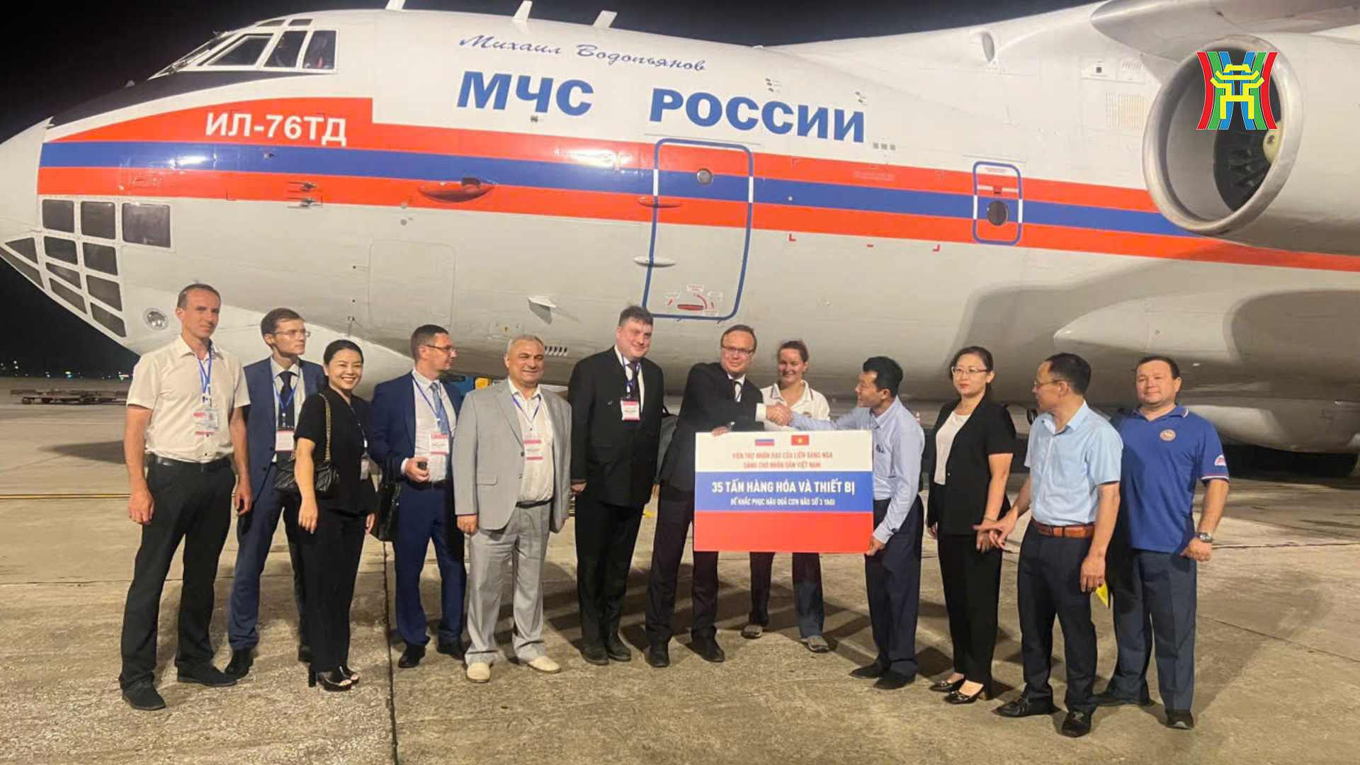 Hơn 35 tấn hàng hoá viện trợ nhân đạo đã được chuyên cơ của Bộ Tình trạng khẩn cấp Liên bang Nga chuyển tới Nội Bài vào tối 20/9 nhằm hỗ trợ Việt Nam khắc phục hậu quả tàn khốc của cơn bão số 3 (Yagi).