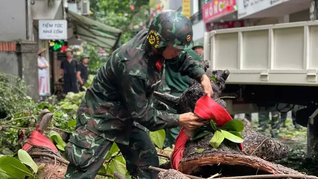 Công an, quân đội xuyên đêm khắc phục thiệt hại do bão số 3