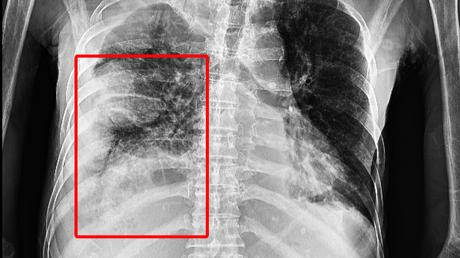 Tại đây, mặc dù các bác sĩ đã tiến hành đặt ống nội khí quản, hỗ trợ thở máy, góp phần cải thiện chỉ số oxy trong máu (Sp02) lên khoảng 88-90%, nâng áp lực dương cuối thở ra (Peep) lên cao nhưng phổi của bệnh nhân vẫn không nở đều. Kết quả chụp CT-Scanner 32 cho thấy hình ảnh tràn dịch khoang màng phổi hai bên gây xẹp thụ động nhu mô phổi lân cận, giãn các nhánh phế quản phải trong vùng nhu mô phổi xẹp. Xuất hiện hạch trung thất và hạch hố thượng đòn phải. Tiên lượng tử vong cao nếu không khẩn trương xử trí sạch ổ cặn, kích phổi phải giãn nở tốt đáp ứng thông khí.