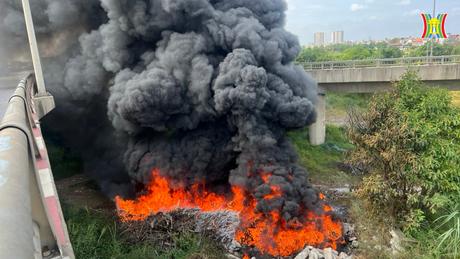 Vị trí cháy thuộc địa bàn quận Long Biên, hiện lực lượng chữa cháy đã bàn giao vụ việc cho công an phường sở tại điều tra làm rõ vụ việc.