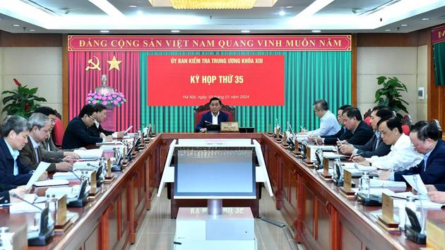 Trong ba ngày 10, 11 và 19/1/2024 tại Hà Nội, Ủy ban Kiểm tra Trung ương đã tổ chức kỳ họp thứ 35. Đồng chí Trần Cẩm Tú, Ủy viên Bộ Chính trị, Bí thư Trung ương Đảng, Chủ nhiệm Ủy ban Kiểm tra Trung ương chủ trì kỳ họp.