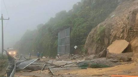 Một số điểm trên đường đèo Hải Vân, thuộc địa phận Đà Nẵng, xảy ra sạt lở. Hiện tại, lực lượng CSGT hai tỉnh Thừa Thiên - Huế, Đà Nẵng đang tổ chức chốt chặn, không cho các phương tiện lên đèo Hải Vân để đảm bảo an toàn.