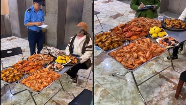 Khi nhóm khách ra về, các nhân viên đã giữ lại và yêu cầu kiểm tra túi đồ tuy nhiên nhóm khách nhất định không đồng ý và nói rằng bên trong chỉ có quần áo. Sau khi xem hình ảnh từ camera, họ mới chấp nhận để nhân viên kiểm tra. Kết quả, trong túi có rất nhiều cua, ghẹ, tôm, sashimi và bánh bao kim sa. Tổng số hải sản lên tới 10kg.