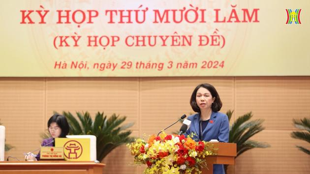 Bà Vũ Thu Hà, Phó Chủ tịch UBND Thành phố trình tại kỳ họp