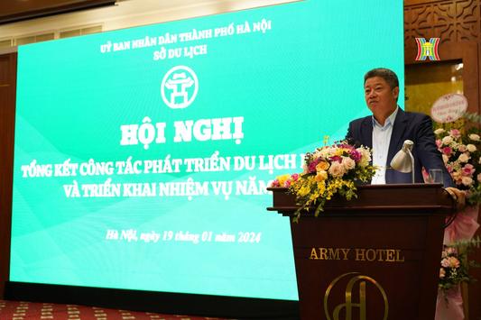 Phát biểu chỉ đạo tại hội nghị, Bộ trưởng Bộ văn hóa thể thao và du lịch Nguyễn Văn Hùng khẳng định, du lịch Hà Nội đã có bước phát triển mạnh mẽ đặc biệt ở lượng khách quốc tế. Hà Nội đã đón 4 triệu lượt khách quốc tế tăng hơn 266 % so với năm 2022 . Tổng thu từ khách du lịch ước đạt 87,65 nghìn tỷ đồng, tăng 45,5% so với năm 2022. Điểm sáng thứ hai, đó là Hà Nội đã có sự đổi mới, sáng tạo trong việc tạo ra các sản phẩm du lịch dựa trên trụ cột tài nguyên văn hóa. Các sản phẩm độc đáo đã làm nên thương hiệu của du lịch Hà Nội. Hà Nội cũng đã nhận diện rõ sự kiện văn hóa, sự kiện thể thao, sự kiện quốc tế là điểm đến của du khách, tạo ra cách nhận diện sản phẩm mới từ sự kiện và kích cầu du lịch. Chúc mừng những kết quả ngành du lịch Thủ đô đã đạt được, Bộ trưởng Bộ văn hóa thể thao và du lịch Nguyễn Văn Hùng yêu cầu ngành du lịch Thủ đô cần tiếp tục tạo ra những sản phẩm mang tinh hoa của Hà Nội để làm hài lòng du khách.