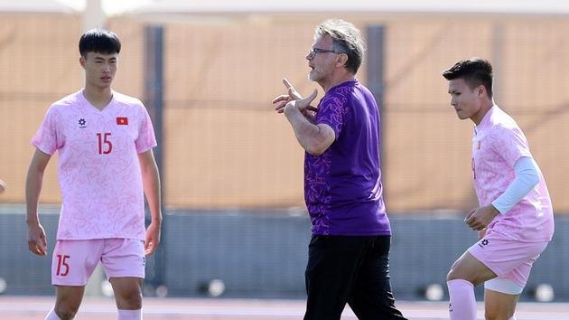 Ghi nhận trên sân tập dù nắng nóng khá rát, HLV Troussier vẫn rất nhiệt huyết và liên tục thúc đẩy các học trò, sẵn sàng tạm dừng các tình huống để phân tích cho các cầu thủ hiểu rõ hơn về ý tưởng của mình.