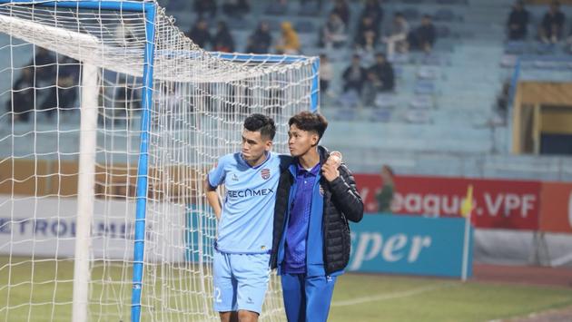 Tiền đạo của CLB Bình Dương nằm sân, tỏ rõ vẻ đau đớn và không thể tiếp tục thi đấu. Anh rời sân ngay sau đó với sự hỗ trợ của nhân viên y tế.