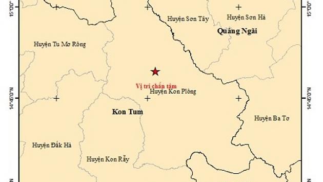 Trung tâm Báo tin động đất và Cảnh báo sóng thần - Viện Vật lý Địa cầu (Viện Hàn lâm Khoa học và Công nghệ Việt Nam) cho biết, vào 12 giờ 49 phút 28 giây trưa nay (5/3), một trận động đất có độ lớn 4.0 độ richter đã xảy ra tại vị trí có toạ độ 14.824N - 108.273E, ở độ sâu khoảng 8.1km, thuộc địa phận huyện Kon Plông, tỉnh Kon Tum.