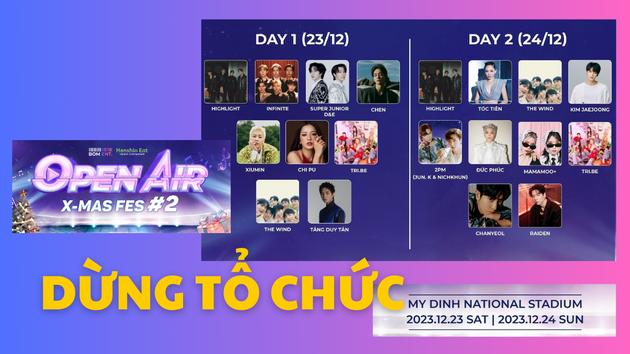 Một ngày trước khi tổ chức sự kiện Kpop Festival Open Air, với hai đêm nhạc Giáng sinh tại SVĐ Mỹ Đình, Hà Nội, ban tổ chức đã đột ngột thông báo 'hủy show'. Trước đó, nhiều nghệ sĩ cả Hàn Quốc và Việt Nam đã lên tiếng không tham dự sự kiện này như: Kim JaeJoong, Infinite, Tóc Tiên, Đức Phúc... Thông tin gây bất bình cho khán giả, đặc biệt là với những người đã mua vé và chưa nhận được hướng dẫn hoàn trả.