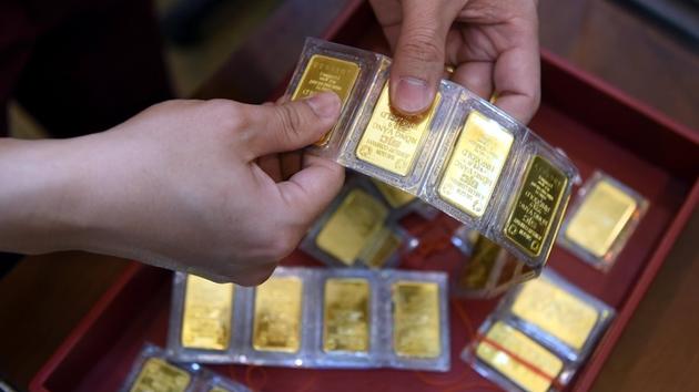Quy đổi theo tỷ giá hiện hành tại Vietcombank, vàng thế giới có giá khoảng 64,3 triệu đồng/lượng (chưa tính thuế, phí).
