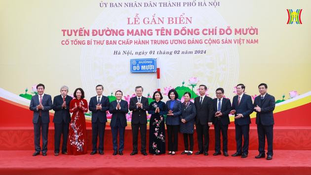 Sáng nay (1/2), UBND thành phố đã tổ chức lễ gắn biển tuyến đường mang tên cố Tổng Bí thư Đỗ Mười trên địa bàn quận Hoàng Mai.